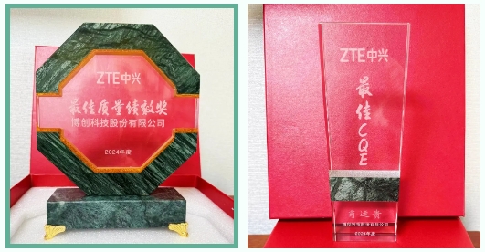 博創(chuàng)科技憑借在產(chǎn)品質量管控和持續(xù)改進方面的杰出表現(xiàn),榮獲中興通訊“最佳質量績效獎”,質量部CQE主管肖運貴榮獲中興通訊“最佳CQE獎”。這兩個獎項的獲得,是對博創(chuàng)科技長期以來堅持高標準、嚴要求質量管理的充分肯定。