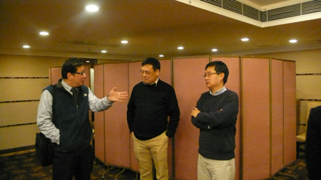 訊石公司石總(左一)與OPNETX的陳博士(中)、AFOP的李總親切交談