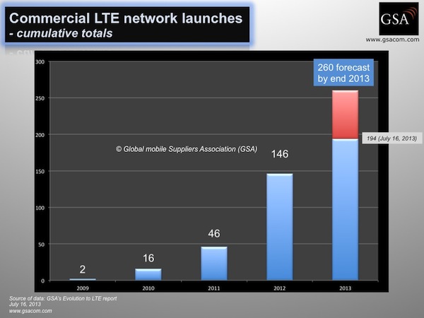 【訊石光通訊咨詢網】2013年7月17日,最新的GSA(全球移動供應商協(xié)會)LTE報告指出,有194家運營商在全球75個國家或地區(qū)已正式推出商用LTE服務。