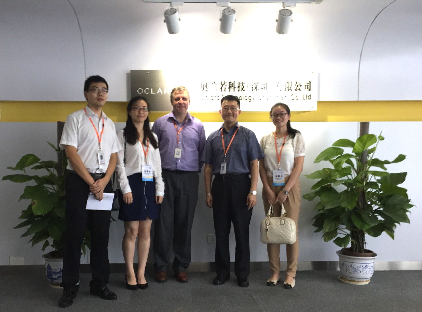 (左起:Oclaro Thomas、訊石Nina、Oclaro COO Jim、Oclaro SM、訊石Debi)