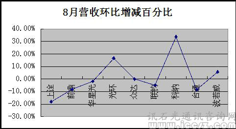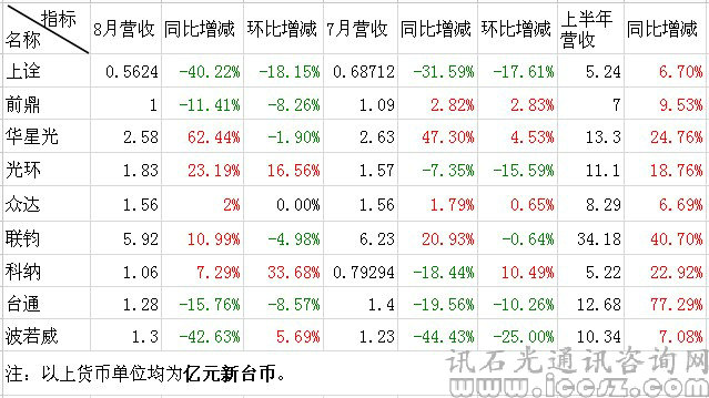 臺(tái)灣光通信商8月營收環(huán)比增減情況