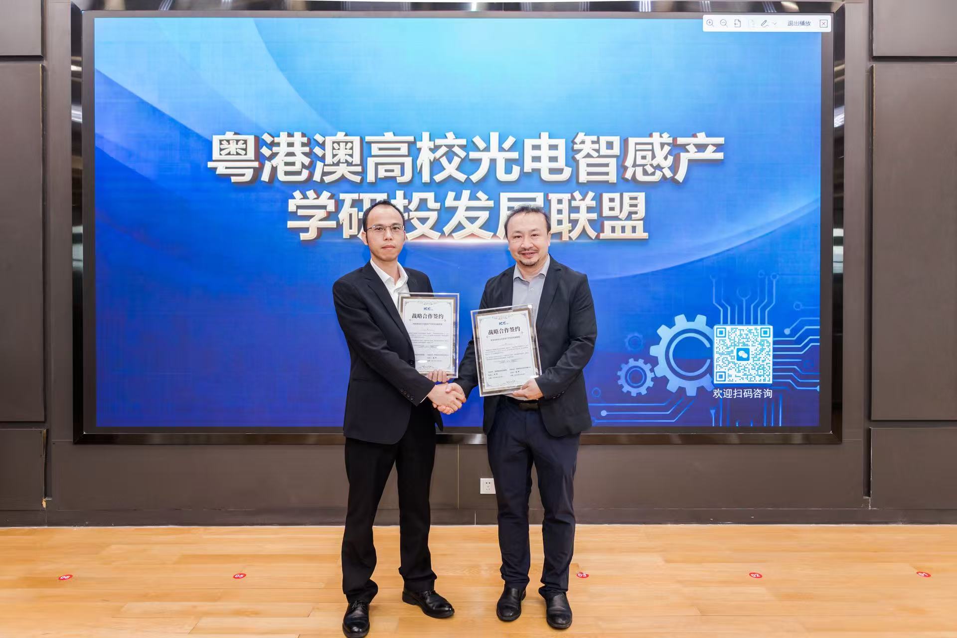ICC訊 近日,“粵港澳高校光電智感產(chǎn)學(xué)研投發(fā)展聯(lián)盟”(以下簡稱“聯(lián)盟”)發(fā)起儀式在南方科技大學(xué)成功舉辦。聯(lián)盟由深圳市訊石科技有限公司與粵港澳高校光電聯(lián)盟沈平教授共同發(fā)起,并于儀式現(xiàn)場正式簽署戰(zhàn)略合作協(xié)議,標(biāo)志著這一匯聚產(chǎn)、學(xué)、研、投多方力量的協(xié)同創(chuàng)新平臺揚(yáng)帆起航,旨在整合粵港澳大灣區(qū)優(yōu)勢資源,合力推動光電智感領(lǐng)域的技術(shù)突破、產(chǎn)業(yè)升級與價(jià)值創(chuàng)造。發(fā)起儀式上,ICC訊石公布當(dāng)前聯(lián)盟規(guī)模:企業(yè)代表35家,高校28家。
