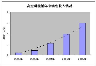 合并前,公司年銷售額約8000萬人民幣,而2004年高意科技銷售總額達(dá)到約2.2億人民幣,到2005年更是達(dá)到4億人民幣,高意科技的銷售額以每年約80%的速度在增長,2006年預(yù)計年銷售額突破6億人民幣。對于國內(nèi)的光器件廠商來說,通過幾家公司組合,從創(chuàng)建之初的“初具規(guī)模”發(fā)展到如今中國光電行業(yè)的排頭兵,真是一名驚人。