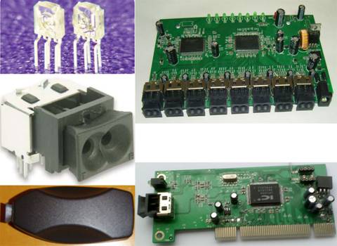 圖4. 塑料光纖配套產(chǎn)品:LED、光模塊、光收發(fā)器、光交換機(jī)、光網(wǎng)卡