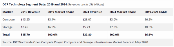 ICC訊(編譯:Nina)IDC的最新預(yù)測顯示,2024年,全球開放計算項目(Open Compute Project,OCP)基礎(chǔ)設(shè)施市場將達338億美元。由于新冠肺炎疫情期間的保本策略,2020年該市場增速略放緩,但IDC預(yù)測其2020-2024年間的年復(fù)合增長率(CAGR)達到16.6%。IDC預(yù)測是假設(shè)在全球經(jīng)濟強勁復(fù)蘇的推動下,該市場將在2021-2022年迅速復(fù)蘇。然而,危機的延長和不確定性也可能推遲市場在2021年以后的復(fù)蘇,盡管在此期間,云服務(wù)提供商的投資可能會主導(dǎo)基礎(chǔ)設(shè)施投資。