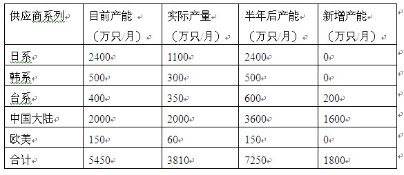 按此新老插芯廠商的投資規(guī)模,預(yù)計到2011年六月國內(nèi)插芯的月均產(chǎn)能達到8000萬只,是2010年底的2.2倍。