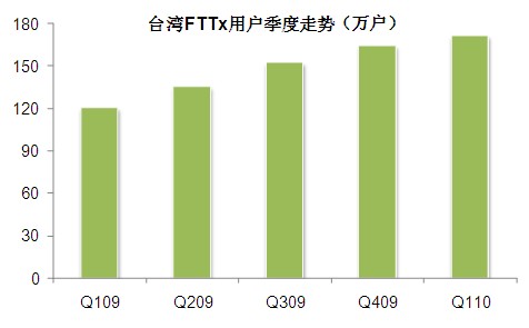 上述數(shù)據(jù)顯示了光纖用戶是有線寬頻用戶中,成長最快速的族群。跟去年第四季比較:Cable Modem用戶成長了1萬,xDSL用戶下滑了12萬。