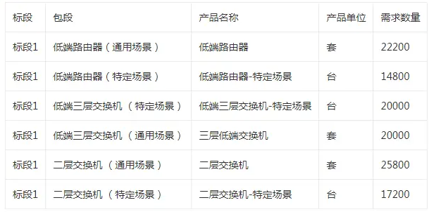 據(jù)此前中國(guó)移動(dòng)發(fā)布的集采公告顯示,中國(guó)移動(dòng)2024年低端路由器和低端交換機(jī)產(chǎn)品集采產(chǎn)品為低端路由器、低端三層交換機(jī)、二層交換機(jī),預(yù)估采購(gòu)規(guī)模為低端路由器3.70萬(wàn)臺(tái)、低端三層交換機(jī)4萬(wàn)臺(tái)、二層交換機(jī)4.30萬(wàn)臺(tái),共計(jì)12萬(wàn)臺(tái)。