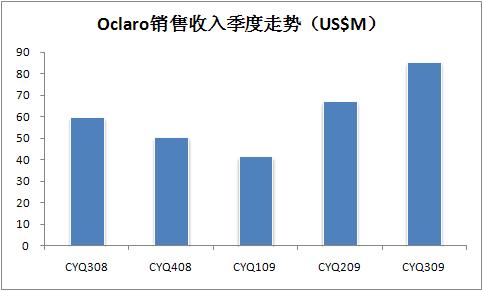 截至2009年9月26日的三個(gè)月,Oclaro凈收入同比增加43.2%至2570萬(wàn)美元,增長(zhǎng)主要來(lái)自今年4月與Avanex公司合并所產(chǎn)生的收入,與電信業(yè)務(wù)密切相關(guān)。三季度電信和先進(jìn)光學(xué)解決方案部門(mén)收入分別比去年同期增長(zhǎng)2,120萬(wàn)元和450萬(wàn)美元。其中先進(jìn)光學(xué)解決方案部門(mén)收入同比增加,主要來(lái)自New Focus業(yè)務(wù)的710萬(wàn)美元收入。
