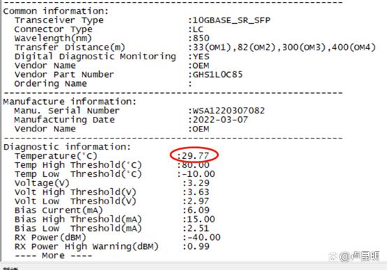 測試端口共12個,平均溫度在29℃,圖片顯示的是其中一個端口的數(shù)據(jù)。