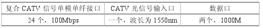 OnAccess2224 視頻復(fù)用光纖交換機(jī)是本方案網(wǎng)絡(luò)的核心設(shè)備,具有一系列單模單纖接口、CATV 光信號(hào)輸入口及數(shù)據(jù)口,具體如下表所示: