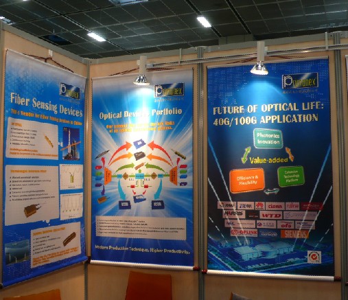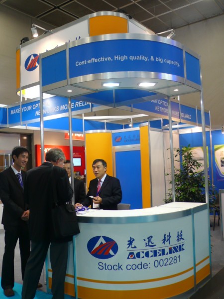 光迅科技展臺前客人絡繹不絕,據悉大部分客戶都已經提前預約好。展會上公司攜五大系列產品出展,充分體現了光迅科技的產品線長、覆蓋面廣的特點。除了傳統的光纖放大器系列、波分復用器系列、光電學器件系列和光通信儀表系外,針對光纖到戶新技術背景下的FTTH光器件系列也是本次光迅科技的重點展出產品;此外,TOF、WSS、TDC、無熱AWG等具有領先工藝的新產品也將同期展出,以展示光迅科技近年來在新品研發(fā)上的進展。