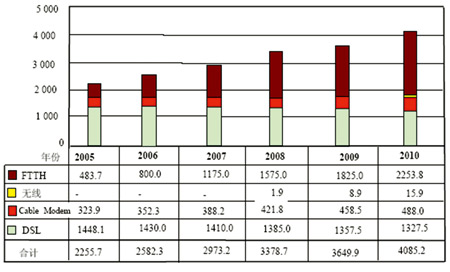 圖1 日本FTTH的發(fā)展預(yù)測(cè)