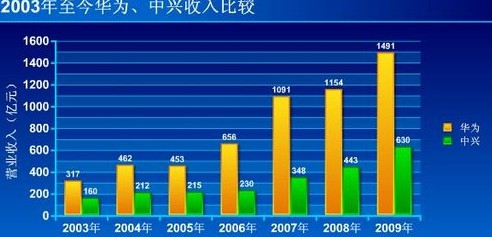 2008年,華為全球銷售收入達到183.3億美元(約合人民幣1250億元),中興雖然也同比增長了27%,營收達到443億元人民幣,但和華為的差距拉大到800億。2009年,華為營收達1491億元,而中興前三季度實現(xiàn)銷售收入428.43億元,“2009年和華為的差距可能繼續(xù)加大。而在中興具備優(yōu)勢的CDMA領(lǐng)域,近年也被華為趕超。”