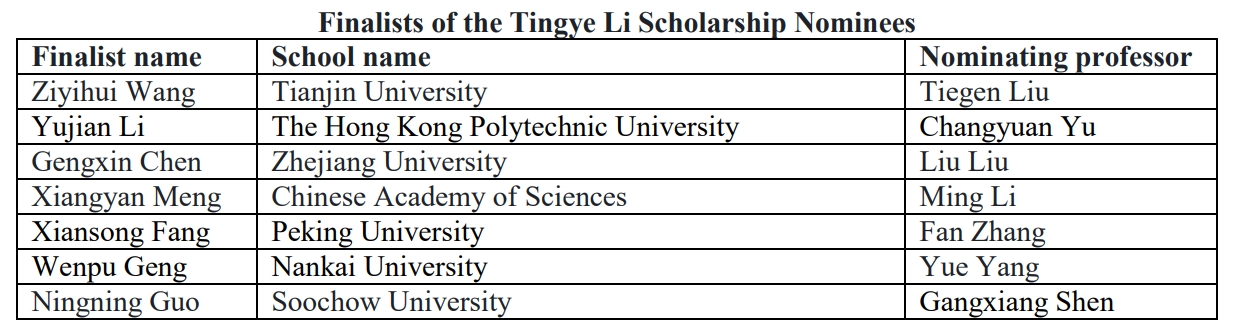 關(guān)于厲鼎毅紀(jì)念獎(jiǎng)學(xué)金(Tingyi Li Memorial Scholarship Award)