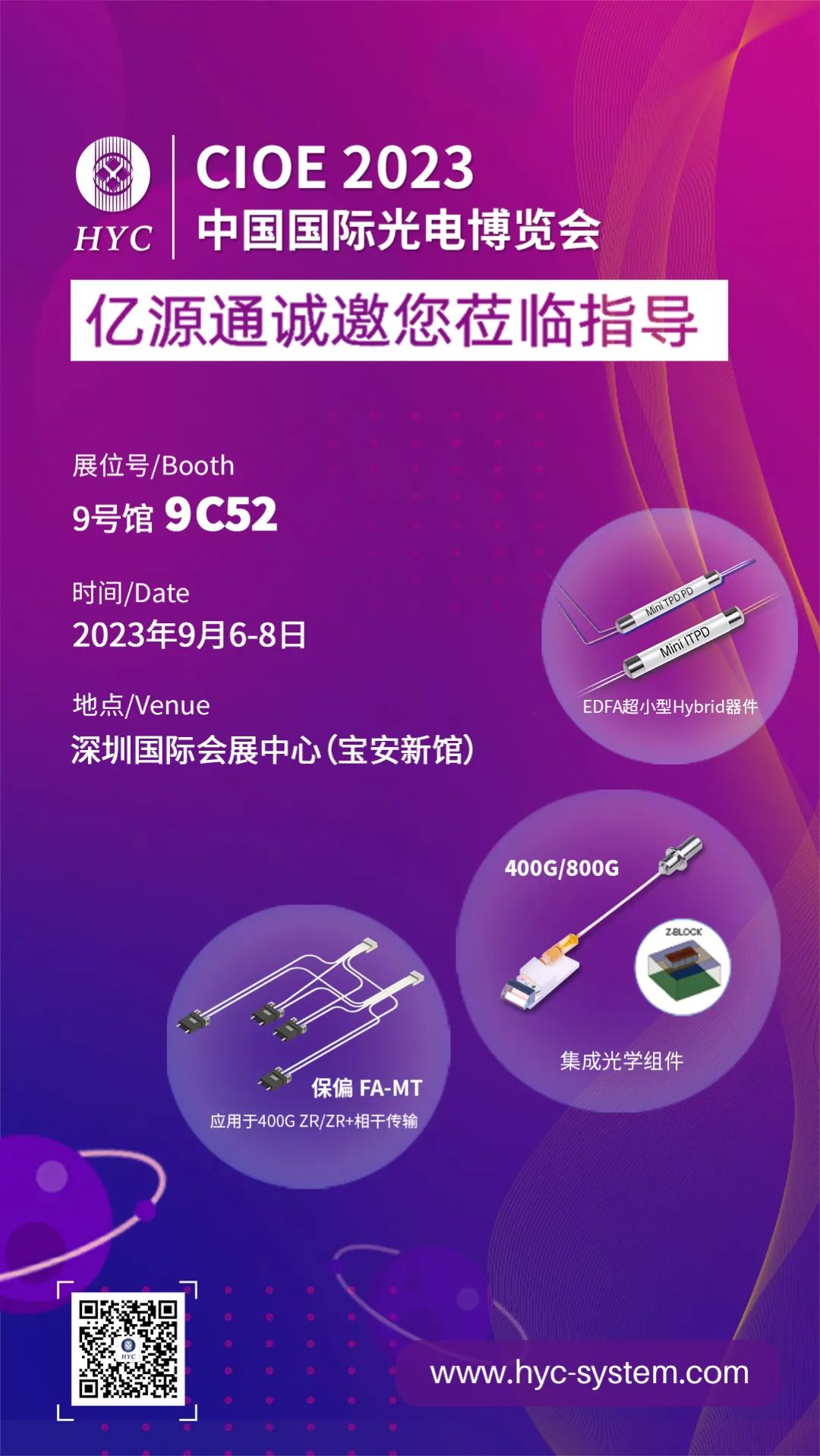 ICC訊 9月6-8日,第24屆中國(guó)國(guó)際光電博覽會(huì)將在深圳國(guó)際會(huì)展中心舉辦,億源通攜EDFA超小型Hybrid器件、400G/800G集成光學(xué)組件和保偏FA-MT等產(chǎn)品亮相展位號(hào)9C52,誠(chéng)邀蒞臨指導(dǎo)!