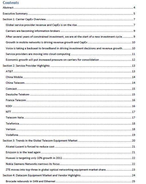 從長遠(yuǎn)來看,一個成熟的市場,資本支出增長與收入增長應(yīng)該成正比。CAPEX可能在短期內(nèi)上升,而個別技術(shù)方案下滑,企業(yè)管理者的政策也改變。隨著經(jīng)濟(jì)條件的改善,企業(yè)通常會采取比收入增長更快的增加資本支出的投資策略,給自己定位以利用銷量不斷攀升。如果不是2011年宏觀經(jīng)濟(jì)的不確定性,排名前12的運營商的資本支出已超過7.5%,但實際數(shù)字表明今年這方面資本支出的增長只有5%。2010年,運營商資本支出增長了3%,而銷售停滯不前。