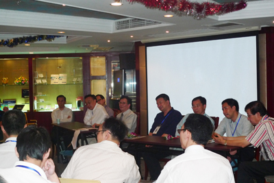 首先登場的是飛陽科技總裁李朝陽先生,他以《PLC芯片產(chǎn)業(yè)(中國)概述》為題,從PLC技術(shù)的概念、PLC產(chǎn)品、PLC市場前景到FAB在國內(nèi)生存、發(fā)展的必要條件,一一地為大家娓娓道來。在提到PLC市場前景的時候,李總也面帶笑容地恭喜大家:在年底后全世界的經(jīng)濟得以恢復,PLC市場也會呈現(xiàn)一片大好的場面。接下來,是博創(chuàng)的朱偉博士為大家?guī)怼短剿鱌LC集成器件的發(fā)展道路》。朱博士以Bell Labs為引子,談到PLC的現(xiàn)狀與未來,講話中途,不時有各位公司老總提出問題,并對博創(chuàng)發(fā)展的如此之快表示極大的贊賞。