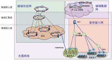 中國(guó)移動(dòng)全業(yè)務(wù)城域傳送網(wǎng)包括城域傳送網(wǎng)、城域數(shù)據(jù)網(wǎng)和以PON技術(shù)為主的寬帶接入網(wǎng),具體參見圖1。