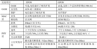 表1 EPON和GPON技術(shù)的對(duì)比分析表