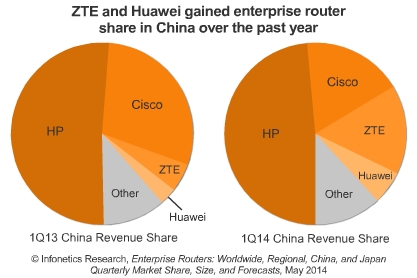 “2013年對(duì)于企業(yè)路由器市場(chǎng)來(lái)說(shuō)是個(gè)好年頭,但2014年卻迎來(lái)一個(gè)糟糕的開(kāi)局。影響Q114企業(yè)路由器銷(xiāo)售收入增長(zhǎng)的因素的多重的,包括產(chǎn)品組合轉(zhuǎn)向低端設(shè)備、持續(xù)上升的價(jià)格壓力、北美市場(chǎng)的疲軟,以及中國(guó)市場(chǎng)轉(zhuǎn)向青睞本土設(shè)備商等,”分析師Matthias Machowinski表示。