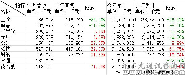 盤點(diǎn)臺灣光通訊2013年營收變動情況