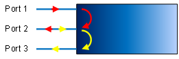 光環(huán)形器的工作原理:將輸入信號從1端口傳輸?shù)?端口,將2端口的輸入信號傳輸?shù)?端口。