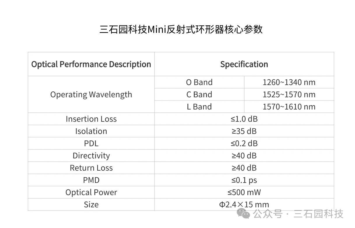 隨著通信技術的不斷發(fā)展,對元件的性能要求也在不斷提高。三石園科技Mini反射式環(huán)形器產(chǎn)品能提供精準、高效的信號管理解決方案。助力客戶應對復雜技術挑戰(zhàn),滿足市場對更高速、更穩(wěn)定、更小型化通信產(chǎn)品的需求。