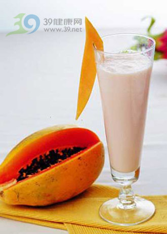 做法:木瓜切成塊,連同牛奶、蛋黃一起打成汁,再加入檸檬汁及蜂蜜,