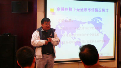 11月28日,每月一期的訊石光通訊聯(lián)誼會于訊石多功能會議廳如期舉行。由于華爾街金融風(fēng)暴演變而來的全球金融危機(jī)正愈演愈烈,連遠(yuǎn)在大洋彼岸的中國企業(yè)亦逐漸感受到了寒潮的侵襲。為了分析金融危機(jī)下光通訊行業(yè)的形勢與走勢,引領(lǐng)光通訊企業(yè)把握全球經(jīng)濟(jì)現(xiàn)狀與發(fā)展機(jī)遇, 訊石信息咨詢(深圳)有限公司在十一月聯(lián)誼會期間推出了“金融風(fēng)暴專題”,邀請了諸多行業(yè)內(nèi)及非行業(yè)內(nèi)人士齊聚訊石多功能會議廳,共同探討光通訊企業(yè)在金融危機(jī)下所面臨的機(jī)遇與挑戰(zhàn)。以下是關(guān)于“金融危機(jī)下光通訊市場情況探討”環(huán)節(jié)精彩發(fā)言的一些摘錄。