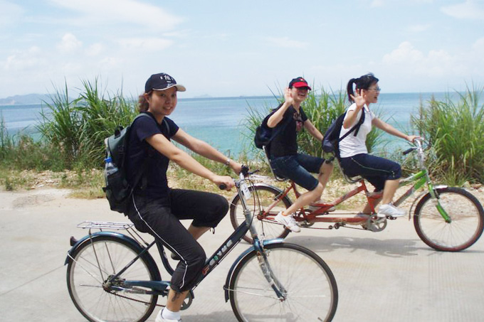 【活動暢想】:當(dāng)雙人自行車在美麗的沿海公路緩緩前行,海風(fēng)飄動你的黑發(fā),發(fā)稍后是你初識的好友或是你的至愛或是你的孩子,而眼前是藍(lán)藍(lán)的大海,心是如此的輕,所有生活中的繁瑣都不見,唯有寫在你臉上的幸福與滿足——快樂有時真得很簡單!