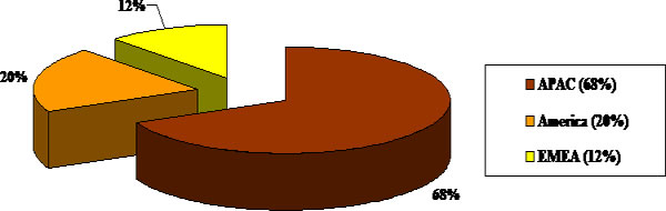 2012年,亞太地區(qū)(APAC)預計將以68%的市場份額占據(jù)全球PLC分路器緊湊型設(shè)備消費額第一的位置,其次是美洲地區(qū),EMEA份額最小。