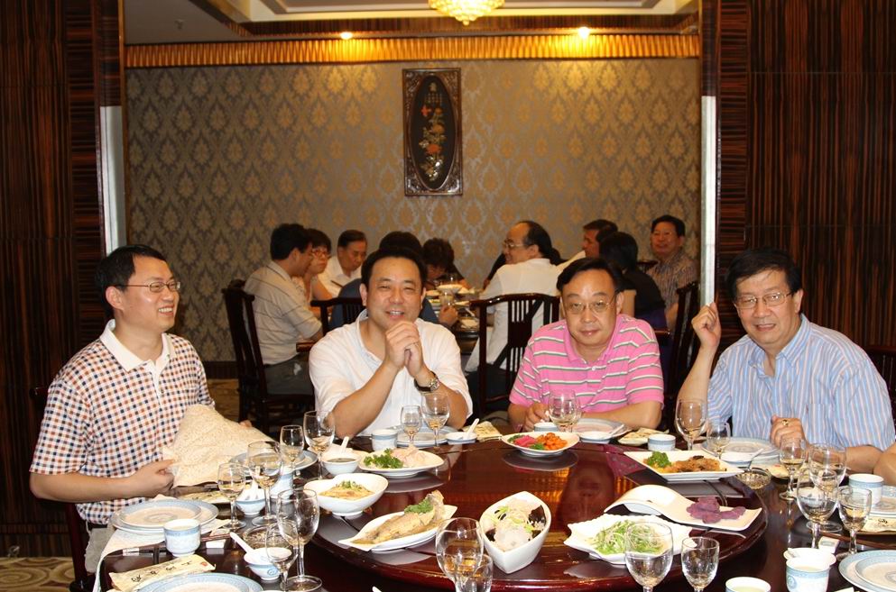 聚餐交流(圖為無錫愛渥富董事長程正達(dá)先生,四川飛陽總經(jīng)理李朝陽博士,新飛通研發(fā)總監(jiān)楊亞濤博士等)