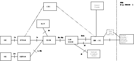 相比傳統(tǒng)的3GPP R4/R5架構(gòu),TD-MBMS系統(tǒng)在核心網(wǎng)部分新增了一個(gè)BM-SC網(wǎng)元,用于對(duì)TD-MBMS業(yè)務(wù)的提供和控制和在多播業(yè)務(wù)時(shí)實(shí)現(xiàn)對(duì)移動(dòng)終端的接入控制和計(jì)費(fèi)。