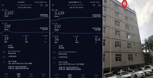 為充分發(fā)揮3.5G大帶寬能力、給用戶(hù)帶來(lái)極致速率體驗(yàn)提供保障,本次試點(diǎn)選取現(xiàn)網(wǎng)商用條件下的站點(diǎn),單載波100M情況下,下行峰值速率最高達(dá)1.54Gbps。配置200M CA后,現(xiàn)網(wǎng)商用配置下行峰值速率最高達(dá)3.1Gbps;特殊配置下行峰值速率最高可達(dá)3.4Gbps。