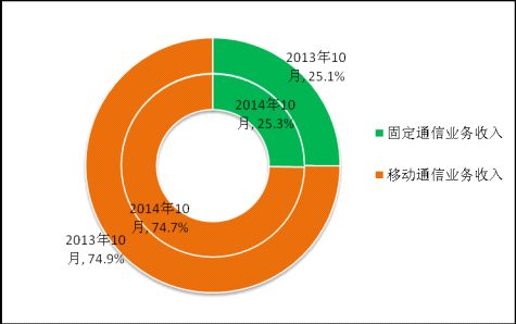 圖9 2014年10月電信主營業(yè)務(wù)收入構(gòu)成(固定和移動(dòng))