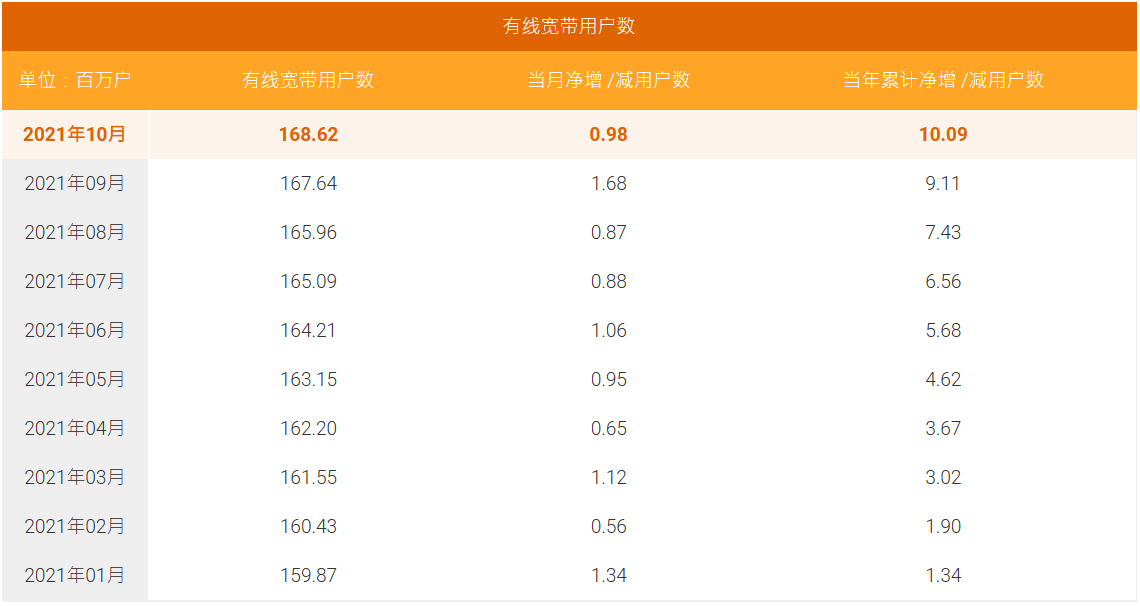 有線寬帶業(yè)務(wù)方面,當(dāng)月,中國電信有線寬帶用戶數(shù)凈增98萬戶,有線寬帶累計用戶數(shù)1.6862億戶。固定電話業(yè)務(wù)方面,當(dāng)月中國電信固定電話用戶數(shù)凈減18萬戶,固定電話累計用戶數(shù)1.0691億戶。