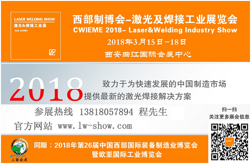 2018西部制博會-激光及焊接工業(yè)展覽會即將于2018年3月15日—18日在西安曲江會展中心舉行,規(guī)劃總展出面積8萬平方米,總展位近4000個(gè)。