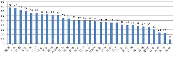 圖11 2015年4月全國各省8M以上固定寬帶用戶占比(%)對比