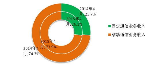 圖8 2015年5月電信業(yè)務(wù)收入結(jié)構(gòu)占比情況(固定和移動)