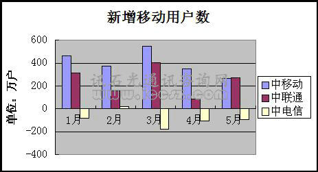 三大運營商新增移動用戶數(shù)變化