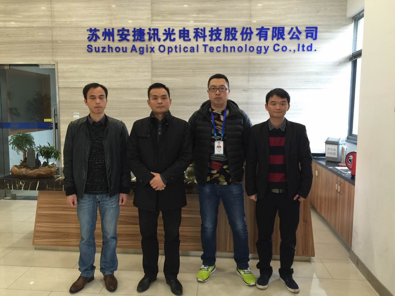 ICCSZ訊 2017年2月22日,「2017訊石江浙行」進入第三天,訊石團隊來到了本次拜訪之行的第十站——蘇州安捷訊光電科技股份有限公司(以下簡稱“安捷訊”或“公司”)。這是一家以“誠信 創(chuàng)新 服務(wù)”為企業(yè)精神的高新技術(shù)企業(yè),2009年由一批通信行業(yè)的資深專業(yè)人員創(chuàng)辦,歷經(jīng)近8年的耕耘發(fā)展,逐漸在蘇州這處江南水鄉(xiāng)綻放出光通信的熠熠光芒,并成功于2016年7月在新三板掛牌上市,證券代碼838112。