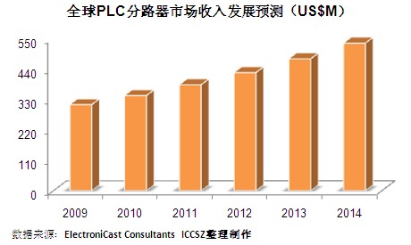 (訊石光通訊咨詢網(wǎng)編譯) 2009年,全球元器件級(jí)別的PLC分路器小型設(shè)備( PLC Splitter Component-Level Compact Devices )市場(chǎng)收入為3.2億美元。預(yù)計(jì)在2009年至2014年期間,該產(chǎn)品銷售額將以11.4%的年復(fù)合增長(zhǎng)率增長(zhǎng),截止2014年將達(dá)到5.35億美元,據(jù)ElectroniCast最新數(shù)據(jù)顯示。