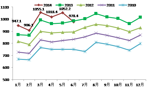 從上圖可以看出,2014年6月份之前我國電信業(yè)主營業(yè)務(wù)收入層次分明,不管哪一個(gè)月份,其主營業(yè)務(wù)收入均比上一年的有所增長,而2014年6月份卻罕見的出現(xiàn)了同比下降。這是不是偶然不得而知,但從歷史來看,這是一種容忽視的情況。