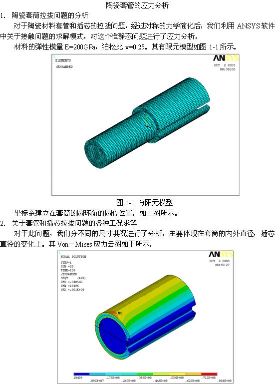 對(duì)于陶瓷材料套管和插芯的拉拔問題,經(jīng)過對(duì)稱的力學(xué)簡化后,我們利用ANSYS軟件中關(guān)于接觸問題的求解模式,對(duì)這個(gè)準(zhǔn)靜態(tài)問題進(jìn)行了應(yīng)力分析。
