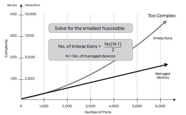 4, 網(wǎng)絡(luò)設(shè)備之間的STP、LAG、路由處理、安全等等相互之間的交互信息,隨著設(shè)備數(shù)量的增加,會成幾何級數(shù)激增。