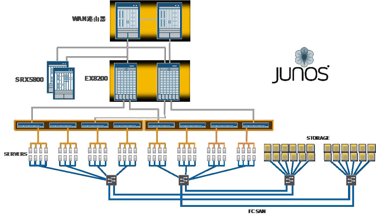 Juniper Networks網(wǎng)絡(luò)數(shù)據(jù)中心架構(gòu)解決方案簡化了數(shù)據(jù)中心的安全與網(wǎng)絡(luò)設(shè)計(jì)。通過消除傳統(tǒng)架構(gòu)中的多個(gè)交換節(jié)點(diǎn),全新的簡化網(wǎng)絡(luò)設(shè)計(jì)需要更少的設(shè)備和互聯(lián)鏈路-帶來空間、電源、制冷以及管理的更高效率。設(shè)備的減少、性能的提高以及高可用性,是通過具有線速性能的集群交換 (Virtual Chassis) 技術(shù)獲得的。
