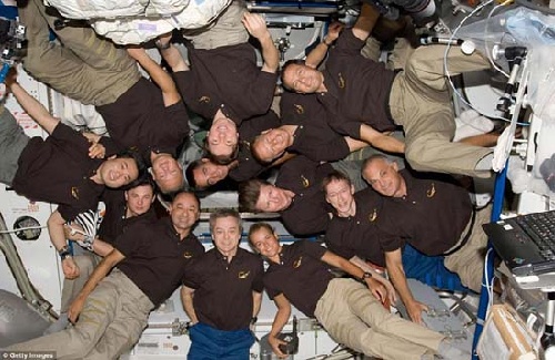 如果你嫌地球上人太多,太嘈雜,想去太空找清凈,那你一定會失望的。太空中同樣“人滿為患”,特別是在此次“奮進”號與國際空間站對接的11天中,13位宇航員幾乎要將狹小的空間站擠爆了。正常情況下,國際空間站內(nèi)的人數(shù)應(yīng)該是6名。一下子多了一倍還多的人,圍著一張“巴掌大”的小桌子,連吃飯都坐不下。這時,常為宇航員帶來不便的失重狀態(tài),罕見地幫了一回大忙——日本宇航員若田光一漂浮在桌子上方,有效地利用了每一寸空間。當大家開吃時,簡直可以用一片狼藉來形容,看看宇航員從空間站拍回的照片吧,估計沒有哪位母親能容忍家里的桌子這么亂。