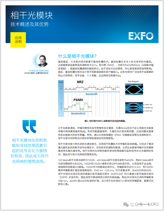 對(duì)于部署和維護(hù)高速網(wǎng)絡(luò)的運(yùn)營(yíng)商來(lái)說(shuō),掌握相干光模塊至關(guān)重要。借助EXFO的高速測(cè)試解決方案和支持,運(yùn)營(yíng)商可以有效地應(yīng)對(duì)100G、400G、800G乃至更高速率的測(cè)試挑戰(zhàn),確保網(wǎng)絡(luò)始終高效、可靠并準(zhǔn)備好滿足未來(lái)需求。