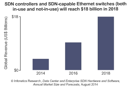 * Infonetics預(yù)測(cè)“真正”的SDN市場(chǎng)——使用SDN以太網(wǎng)交換機(jī)和控制器——到2018年將達(dá)到95億美元。